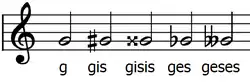 - Beispiel: as wird als erniedrigtes a (a♭) geschrieben, gis als erhöhtes g (g♯).