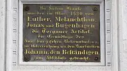 - ↑ Luther und die Fürsten. 1. Nationale Sonderausstellung zum 500. Reformationsjubiläum in Torgau ( vom 6. April 2017 im Internet Archive). In: skd.museum, Staatliche Kunstsammlungen Dresden; abgerufen am 20. Dezember 2017.