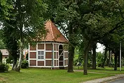 Das Torhaus Lange Straße 37 zum Friedhof in der niedersächsischen Samtgemeinde Land Hadeln, Gemeinde Osten im Landkreis Cuxhaven, stammt aus der ersten Hälfte des 19. Jahrhunderts.