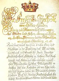 1810 belehnte der dänische König seinen Verwandten Herzog Friedrich Carl Ludwig von Schleswig-Holstein-Sonderburg-Beck (1757–1816)[6] mit dem Gut Wellingsbüttel. Der Herzog war Königlich-Preußischer Generalleutnant gewesen und dann in Russische Dienste getreten. 1810 wurde er dänischer General. Er ist Vorfahr der Britischen Königsfamilie – sowohl von Elisabeth II. als auch ihres Gemahls Philip Mountbatten, Duke of Edinburgh, des Dänischen Königshauses, des Norwegischen Königshauses, des vormaligen Griechischen Königshauses und der Königin Sophia von Spanien. Während seines Besitzes wurde Wellingsbüttel zum Kanzleigut erhoben. Ein der Königlich-Dänischen Kanzlei in Kopenhagen direkt unterstelltes Kanzleigut war der örtlichen Gerichtsbarkeit entzogen, übte eigene Patrimonialgerichtsbarkeit und besaß Hoheitsrechte gegenüber den anderen Ortsbesitzungen.
