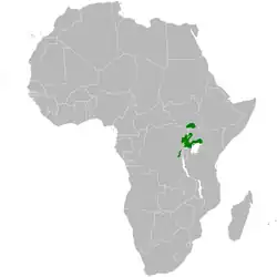 Der Vogel kommt in Afrika vor im Süden des Südsudan, im Osten der Demokratischen Republik Kongo, in Uganda, im äußersten Westen Kenias und im äußersten Nordwesten Tansanias.