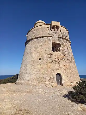- ↑ a b c Joan Lluís Ferrer: Eivissa estrena un centre d'interpretació de les torres de defensa costaneres. In: El Temps. 19. August 2008, S. 50 f. (katalanisch, eltemps.cat [PDF; 449 kB]).