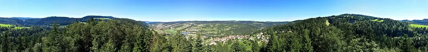 63 Treppenstufen führen auf die Aussichtsplattform in 12,5 Meter Höhe. Von dieser hat man eine Aussicht auf die ehemalige Gemeinde Les Brenets in der Schweiz sowie die Gemeinde Villers-le-Lac auf französischem Gebiet, auf den See Lac des Brenets sowie auf diverse Jurahügel. Vom Parkplatz an der Rue du Châtelard erreicht man den Turm in ca. 15 Minuten.[2]