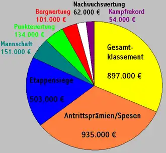 - der von einer Jury gewählte kämpferischste Fahrer einer Etappe mit Massenstart erhielt 2000 Euro
