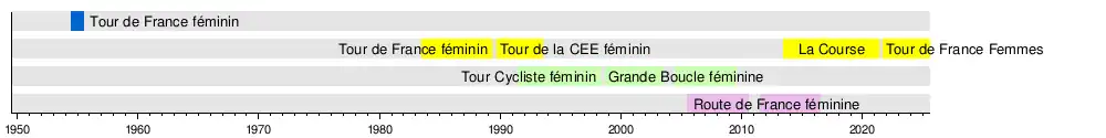 - ↑ a b c L’histoire du Tour de France féminin en 5 dates. Cyclofix.com, 11. März 2022 (französisch).
