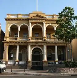 In Townsville sind – ganz im Gegensatz zu vergleichbaren australischen Städten – zahlreiche Gebäude aus dem 19. Jahrhundert und vom Anfang des 20. Jahrhunderts erhalten. Dies gilt besonders für die Flinders Street, die älteste Straße der Stadt.[13] Zu den markantesten Bauwerken zählen das ehemalige Postamt (Townsville Post Office) von 1886 an einer der wichtigsten Straßenkreuzungen der Stadt, dessen Uhrturm 1942 abgebaut und 1963/64 in veränderter Form wieder errichtet wurde, das bereits 1864 erbaute Tattersalls Hotel, die ehemalige Bank of New South Wales von 1887, die 1905 erbaute Bank of Australasia[14] sowie das Queensland Building, ein 1890–92 erbautes Geschäftshaus. Weitere bedeutende Gebäude sind die repräsentative Bank Australian Joint Stock Bank (1887–88), das Townsville Technical College von 1920/21, das Westpac Bank Building von 1935 und das Great Northern Hotel mit seinen großen Balkons, das 1901 fertiggestellt wurde. Gegenüber dem Great Northern Hotel wurde 1910–1913 der erste Bahnhof von Townsville erbaut und am 24. Dezember 1913 eingeweiht. Bis zur Eröffnung des neuen Bahnhofs am Stadtrand 2003 war er in Betrieb.