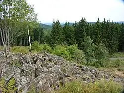 Auf dem Nordosthang der Trödelsteine wachsen mehrere Bäume, der Südwesthang ist komplett bewaldet.