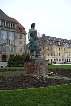 Durch den Krieg war die Innenstadt von Frankfurt (Oder) zu 93 Prozent zerstört. Am Lichtspieltheater der Jugend steht eine am 1. Mai 1955 eingeweihte lebensgroße Skulptur einer Trümmerfrau des Bildhauers Edmund Neutert.
