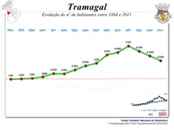 - ↑ a b www.ine.pt – Indikator Resident population by Place of residence and Sex; Decennial in der Datenbank des Instituto Nacional de Estatística