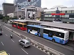 - Die Netzkonfiguration sorgt dafür, dass an den Zwischenhaltestellen ohnehin nicht allzu viel Fahrgastwechsel stattfindet. Hauptsächlich werden die Relationen zwischen den zentralen Haltestellen Stasiun Kota Jakarta bzw. Harmoni und den an den Endstellen gelegenen Busbahnhöfen (Terminals) genutzt, von denen aus der Verkehr durch jeweils mehrere Dutzend Stadtbuslinien weiter in die einzelnen Stadtteile verteilt wird bzw. die Fernbusse nach ganz Java abgehen. An den Zwischenhaltestellen findet hingegen nur wenig Verkehr statt.