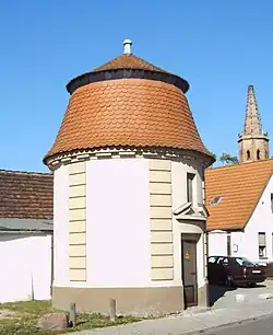 Das auch heute noch als Trafostation genutzte Gebäude entstand um 1920 in der heutigen Straße Alt Prester. Über das Gebäude wurde die Stromversorgung im Umkreis von 800 Metern gesichert. Die Trafostation wurde auf einem kreisrunden Grundriss als verputztes Gebäude mit einer Höhe von etwa 6 Metern errichtet. Die Fassade des im Heimatstil errichteten Bauwerks ist in einer barockisierenden Lisenengliederung gestaltet. Über der Eingangstür befindet sich ein gesprengter Dreiecksgiebel. Das Dach ist als Mansarddach ausgeführt.