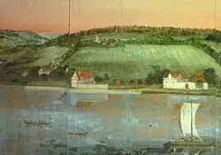 Bis 1838 stand das Gebäude direkt am Wasser, vom See nur durch einen schmalen Fussweg getrennt. Schiffe legten an einem eigenen Hafen an. 1838 wurde vor dem Haus das Ufer für den Bau der Seestrasse aufgeschüttet, was zu etlichen Rechtsstreitigkeiten zwischen dem damaligen Besitzer, dem ehemaligen Zürcher Stadtrat Conrad Hirzel und dem Rat von Zürich führte.