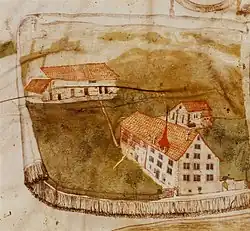 Gut Traubenberg auf der Umzeichnung des Gygerplans (18. Jahrhundert)