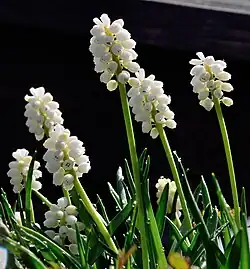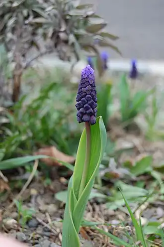 Die Traubenhyazinthen (Muscari) sind eine Pflanzengattung in der Familie der Spargelgewächse (Asparagaceae). Mitunter werden sie auch als Perlhyazinthen bezeichnet, in Teilen Süddeutschlands auch als Bauernbübchen.[1] Dagegen ist in Teilen Mitteldeutschlands der Name Bergmännchen für die Pflanze gebräuchlich.[2] Neben den botanischen Arten gibt es auch einige Hybriden. Heimatgebiete der Arten liegen in Europa (im deutschsprachigen Raum vor allem die Weinbergs-Traubenhyazinthe und die Kleine Traubenhyazinthe), in Nordafrika und Südwestasien.