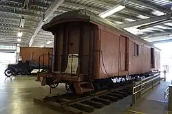 Der Schmalspurwagen in Holzbauart mit einer Spurweite von 914 mm (3 Fuß) aus dem 19. Jahrhundert war ein Bahnpostwagen der Southern Pacific Railroad, der auch als Caboose, Gepäckwagen, Postwagen und als kombinierter Gepäck-Post-Wagen eingesetzt wurde. Er wurde um 1880 von den Carter Brothers gebaut. Er hat eine Masse von 13 t und eine Länge von 13 m. Er wurde dem Museum von der Southern Pacific Railroad vermacht.[2][24]