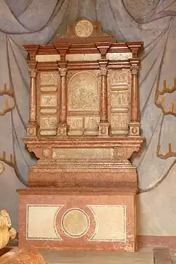 Von Bedeutung ist auch ein dreiteiliger Altar aus rotem Marmor und gelbgrauem Kalkstein. Er stammt aus dem frühen 17. Jahrhundert und zeigt auf seinen Reliefs Szenen aus dem Alten und dem Neuen Testament. Diese sind typologisch aufeinander bezogen und mit Inschriften in lateinischer, griechischer und hebräischer Sprache erläutert.