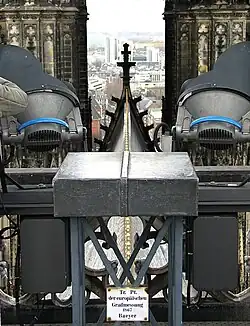 Beobachtungstisch im Vierungsturm des Kölner Doms. Die Tischmitte war schon 1867 das Zentrum der Station für die Europäische Gradmessung und später Nullpunkt für Vermessungen im Rheinland.