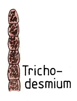 - ↑ a b NCBI Taxonomy Browser: Trichodesmium. Details: Trichodesmium (genus).