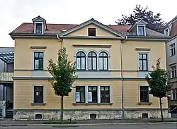Das zweigeschossige Wohnhaus entstand 1872/73. Bauherr war der Hofbuchbindermeister Otto Henss. Henss, sofern er die Villa überhaupt bewohnte, starb 1873, sodass diese 1873 samt der Firma Bürofabrik Otto Henß auf seinen Sohn Adolf Henß überging.[1] 1879 erfolgte ein Anbau an dessen Westseite. Zur Entstehungszeit lag es noch außerhalb des genehmigten Bebauungsplans, weshalb ein Dispens eingeholt werden musste. Es gehörte zu den ersten Häusern im Gebiet des Junkerkirchhofs. Es weicht von den späteren Mietshäusern in seiner äußeren Gestalt ab. Es orientiert sich an der spätklassizistischen Formensprache, was an seiner Fassadengestaltung abzulesen ist. Die Fassadengestaltung ist symmetrisch. Der Mittelrisalit besitzt einen Dreiecksgiebel im Dachbereich.