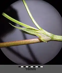 Die glatten Nebenblätter sind bei einer Länge von 1 bis 2,5 Zentimeter Zentimetern sowie einer Breite von über 5 Millimetern verkehrt-eiförmig bis lanzettlich. Die Nebenblätter sind mit den Blattstielen auf einem Drittel ihrer Länge verwachsen. Der freie Teil verjüngt sich und ist zugespitzt oder stark zugespitzt (pfriemförmig), er ist mehr oder weniger häutchenartig.