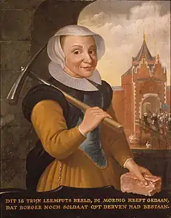 Bereits im frühen 17. Jahrhundert wurden Porträts von Trijn van Leemput gemalt, die sie mit einer Spitzhacke bewaffnet zeigen. Auf einer Tafel des Utrechter Malers Joost Cornelisz Droochsloot, auf der die Belagerung von Vredenburg dargestellt ist, ist sie mit einer Spitzhacke über der Schulter im Vordergrund abgebildet, aber offensichtlich erst später eingefügt.[4] Es wurden auch heroische Texte über Trijn gedichtet, unter anderem von Johannes Immerzeel, der die Legende ausschmückte.