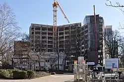 | Blick von der Odine-Bott-Anlage auf das Triton-Haus | ||