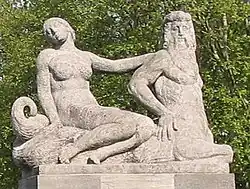- Der Bildhauer Richard Guhr schuf auf der Carl-Zuckmayer-Brücke im Rudolph-Wilde-Park in Berlin-Schöneberg in den Jahren 1908–1910 vier Figurengruppen mit Tritonen, „die auf ihren Rücken Nymphen über das einstmals aus einer Seenkette bestehende Fenngelände von einem Ufer zum anderen tragen“ (Informationstafel vor Ort).
