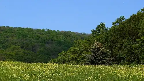 Nach Norden und Osten schließen sich landwirtschaftlichen Nutzflächen, nach Süden und Westen die im Naturschutzgebiet „Karlsberg“ liegenden Buchenwaldgesellschaften.