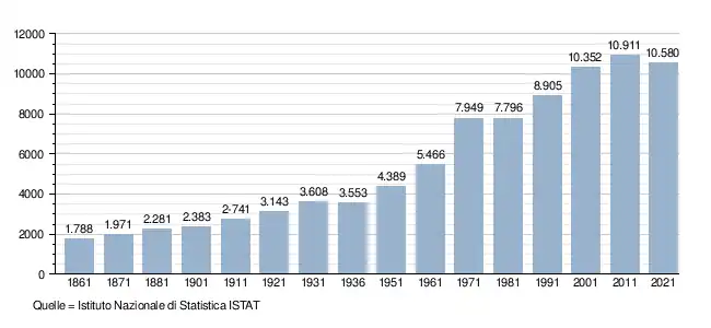 - ↑ Bilancio demografico e popolazione residente per sesso al 31 dicembre 2024. ISTAT. (Bevölkerungsstatistiken des Istituto Nazionale di Statistica, Stand 31. Dezember 2024).