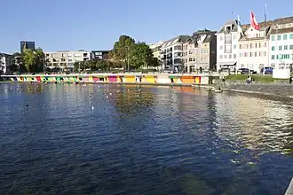 Das trompe-l’œil in Zug ist eine 112 Meter lange, 1998 von Maria Bettina Cogliatti geschaffene Farbfeldmalerei an der Katastrophenbucht.