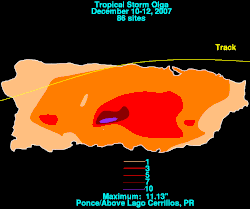 - ↑ a b Puerto Rico National Weather Service: Watches, Warnings, and Advisories for Tropical Storm Olga in Puerto Rico. 2007, abgerufen am 5. März 2011 (englisch).