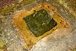 Im Truppenübungsplatz befindet sich die sagenumwobene Dreibannmarke, auch Dreibanmarke genannt, eine Nachbildung eines Grenzsteins aus dem Jahre 1604, der heute die Grenze zwischen den Marken dreier Gemeinden, früher der drei Länder Württemberg, Baden und Hohenzollern, kennzeichnete.[41] Der originale Grenzstein befindet sich heute in der Militärhistorischen Sammlung Stetten am kalten Markt.[42]