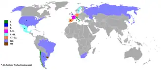 - ↑ Tschechische Spieler in Italien (1934, 1990), Frankreich (1938), der Schweiz (1954), Schweden (1958), Chile (1962), Mexiko (1970) und Spanien (1982) mit der tschechoslowakischen Mannschaft.