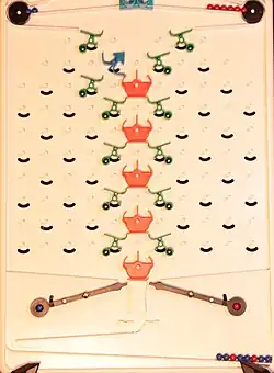 Ziel des Spiels kann es sein, ein vorgegebenes Muster aus blauen und roten Kugeln in der Auffangrinne am unteren Spielrand zu erzeugen oder bestimmte Konstellationen der ihre Position ändernden Bausteine zu erreichen. Dabei können diese Bausteine mit zwei Positionen als Bits interpretiert werden und daher Speicher oder Zähler darstellen.