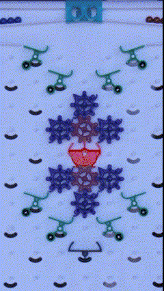 - Kugelführungen: Lenkung der Kugel in eine bestimmte Richtung (Fallziele in Grün), Pfade kreuzen (Kreuzung in Orange) d. h. eine Kugel von links wird nach rechts gelenkt und umgekehrt.