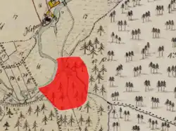 ![]() Turmhügel Diemannskirchen – Ansicht von Süden (April 2017) | ||