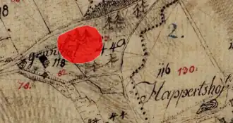 Lageplan des Turmhügels Grünthal auf dem Urkataster von Bayern | ||