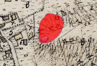 Von der ehemaligen Mottenanlage ist nur noch der Turmhügel ansatzweise erkennbar[1].