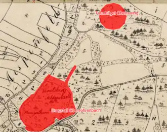 Lageplan des Turmhügels Oberroning auf dem Urkataster von Bayern | ||