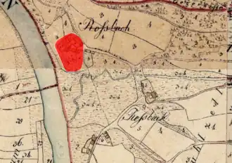 Lageplan von Turmhügel Roßbach auf dem Urkataster von Bayern | ||