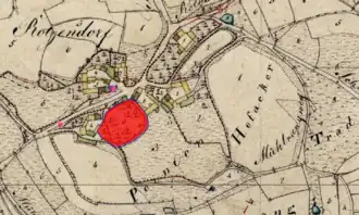 Lageplan des Turmhügels Rotzendorf auf dem Urkataster von Bayern | |