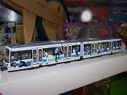 2009 wurde ein Modellbahn-Modell im H0-Maßstab veröffentlicht. Das Modell eines U5-Triebwagens der VGF ist mit Werbebeschriftung der Turngemeinde Bornheim versehen. Ebenfalls ab 2009 fuhr ein U2-Triebwagen der VGF mit einer Werbebeklebung der Turngemeinde Bornheim im Linienverkehr.[38] 2017 wurde eine 50 Meter lange Einheit aus zwei U5-50-Triebwagen mit neuen Bildern von Mitarbeitern der TG Bornheim vorgestellt.[39]