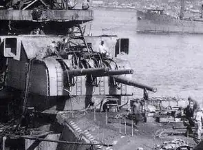 - ↑ Diese Zahl beschränkt sich auf die Soldaten unmittelbar im Turm. Die Soldaten, die auf den unteren Ebenen den Turm mit Munition versorgten, sind nicht enthalten. USNTMJ O-47, S. 37