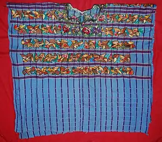 Hochzeitsponcho für Männer der Tzutuhil. Gewebt und von Hand hochwertig, beidseitig bestickt von der Braut für den Bräutigam. Arbeitszeit 6–8 Wochen.