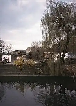 Eine 1999 eröffnete Fußgängerbrücke, die den westlichen Seitenbahnsteig mit dem Parkhaus südlich des Landwehrkanals verband, wurde im September/Oktober 2019 wieder abgerissen.[6]
