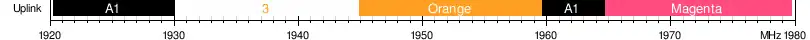 | XXV | 1850 – 1915 MHz | 1930 – 1995 MHz | 80 MHz | ||