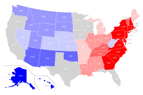 Aufnahme der einzelnen Bundesstaaten in die Union 1776 bis 1959: