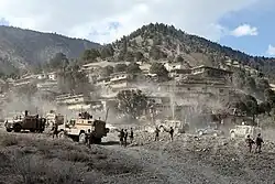 In Afghanistan begann der Krieg damit, dass Spezialeinheiten am Boden Luftschläge US-amerikanischer und britischer Kampfflugzeuge, Marschflugkörper und Langstreckenbombern zur Unterstützung der Milizen der Nordallianz anleiteten. Ab Ende 2001, Afghanistan war weitgehend erobert worden, dominierte die Suche nach in Afghanistan verbliebenen al-Qaida-Mitgliedern und Taliban. Die größte derartige Operation war die Schlacht um Tora Bora, bei der auch wieder wenige Spezialkräfte Luftangriffe leiteten und bis zu 1000 afghanische Kämpfer die Bodentruppen stellten. Die Vorgehensweise war ein vom Verteidigungsminister Donald Rumsfeld geförderter Ansatz, da er von den Vorteilen von „Smart Bombs“ überzeugt war.[3] Im März 2002, bei der Operation Anaconda, kämpften dagegen 1.700 US-Soldaten, Spezialkräfte und erstmals auch normale Soldaten, zusammen mit etwa 1000 afghanischen Milizionären und weiteren NATO-Soldaten.