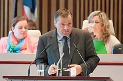 Udo Michael Wilhelm Pastörs (* 24. August 1952 in Wegberg[1]) ist ein deutscher Neonazi[2] und Politiker (Die Heimat), der dem Landesverband Mecklenburg-Vorpommern angehört.[3][4] Von 2006 bis 2016 war er Abgeordneter des Landtages Mecklenburg-Vorpommern und zudem von Dezember 2013 bis November 2014 Bundesvorsitzender der Partei (damals unter dem Namen NPD). Pastörs galt während seiner Zeit als Landtagsabgeordneter bis 2016 als einer der Führungskader des parteipolitisch organisierten Rechtsextremismus' in Deutschland.[5]