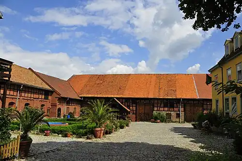 In der Boilstädter Straße befindet sich die Hofanlage eines Rittergutes, das dem verdienstvollen Dr. phil. Ewald Troch (1879–1952) gehörte.[5] Der Gebäudekomplex steht unter Denkmalschutz, wie auch die benachbarte St.-Johannes-Kirche, eine um 1640 erneuerte Dorfkirche mit Chorturm und Doppelempore. An die historische Ortslage schließen sich im Norden und Süden zwei Wohnsiedlungen („Hinter dem Teichdamm“ und „Schulweg“) an, die in den 1990er Jahren angelegt wurden.[1]